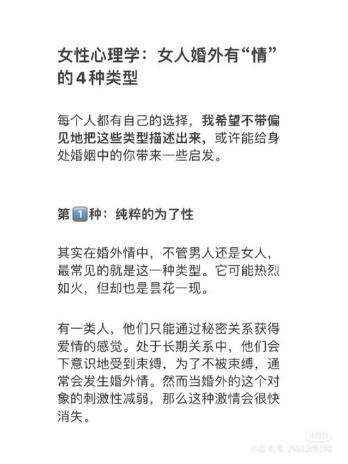 有些女性的出轨只是一种瞬间的冲动,他们心中知道这一点。她仍然非常爱丈夫,但她对婚外情很好奇。经过尝试之后,他们都非常了解他们的恋人是否真的爱他们,是否真的爱他们女人出轨的心理,以及他们是否真的可以与他们一起度过一生。只不过是玩得开心。没有人必须对任何人负责,这是您和我想做的。因此,他们非常担心丈夫会与她离婚。由于我的冲动,我失去了丈夫和孩子。她摧毁了这个房子,无法承受这一事件的后果,所以她敢于不承认。
